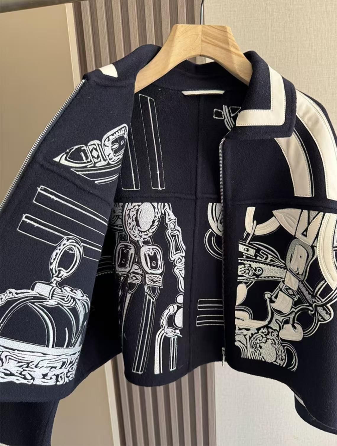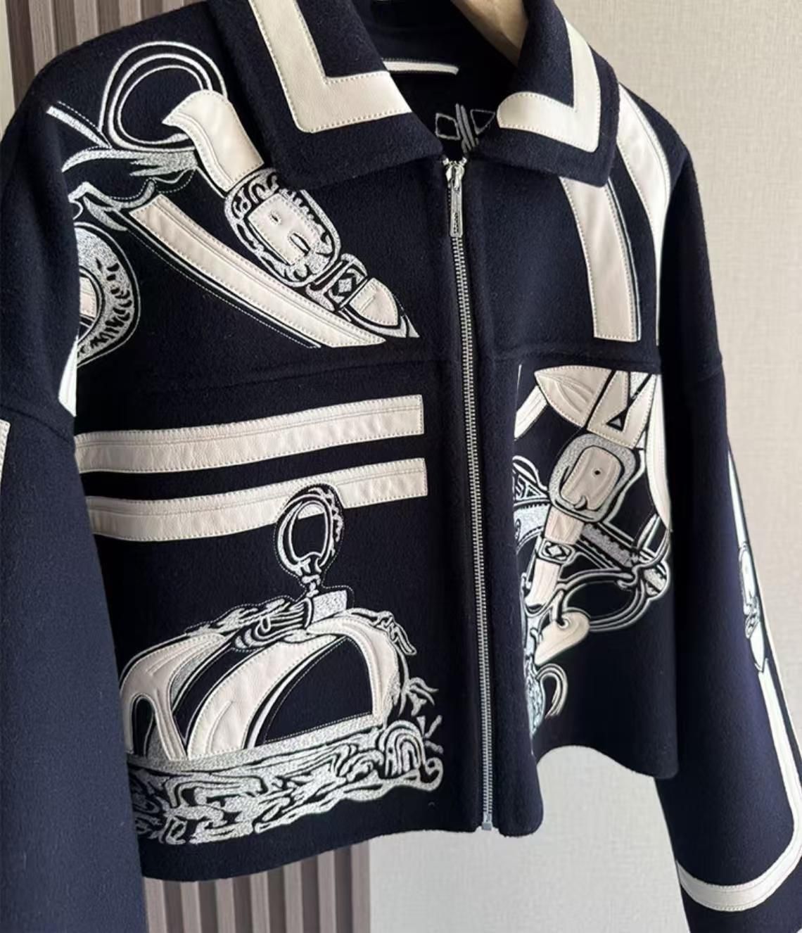 Hermès型刺繍とレザーで作ったユニークな模様。